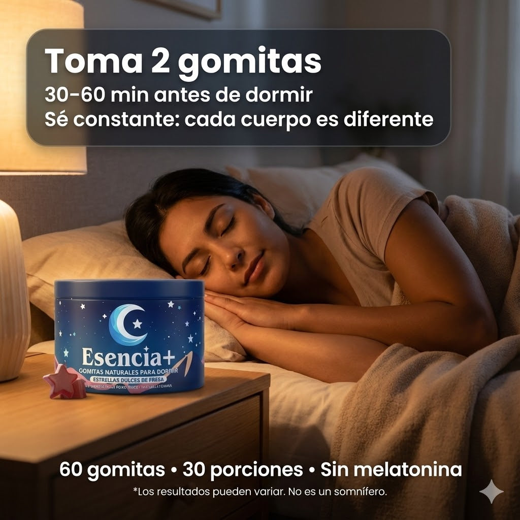 Tómalo 30–45 minutos antes de dormir, siguiendo la porción recomendada en la etiqueta (comúnmente 2 gomitas por noche)