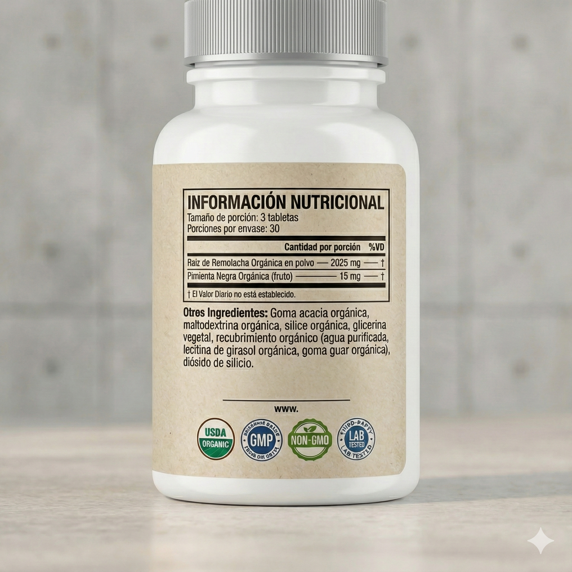 La Raíz de Remolacha Orgánica es un suplemento natural rico en nitratos, diseñado para apoyar la circulación, aumentar la energía diaria y promover un mayor bienestar interno.